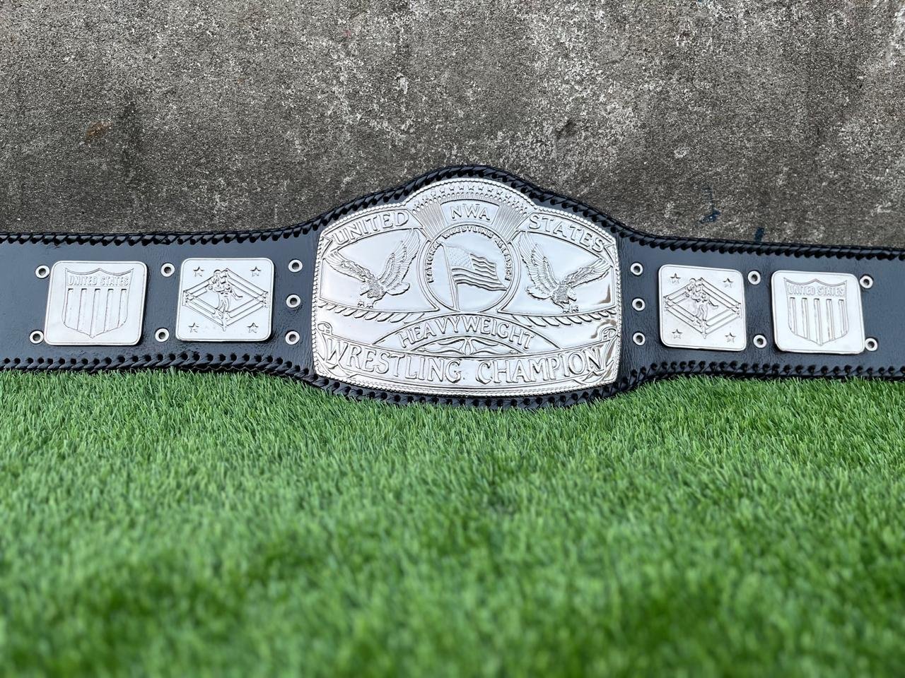 This is a high–quality replica of the classic United States Heavyweight Wrestling Championship Belt, crafted with 4MM solid zinc metal plates and a beautiful nickel (silver) finish. The belt features deep 3D etching, classic American eagle artwork, and a premium hand-tooled leather strap — making it perfect for collectors, wrestling fans, and display enthusiasts.