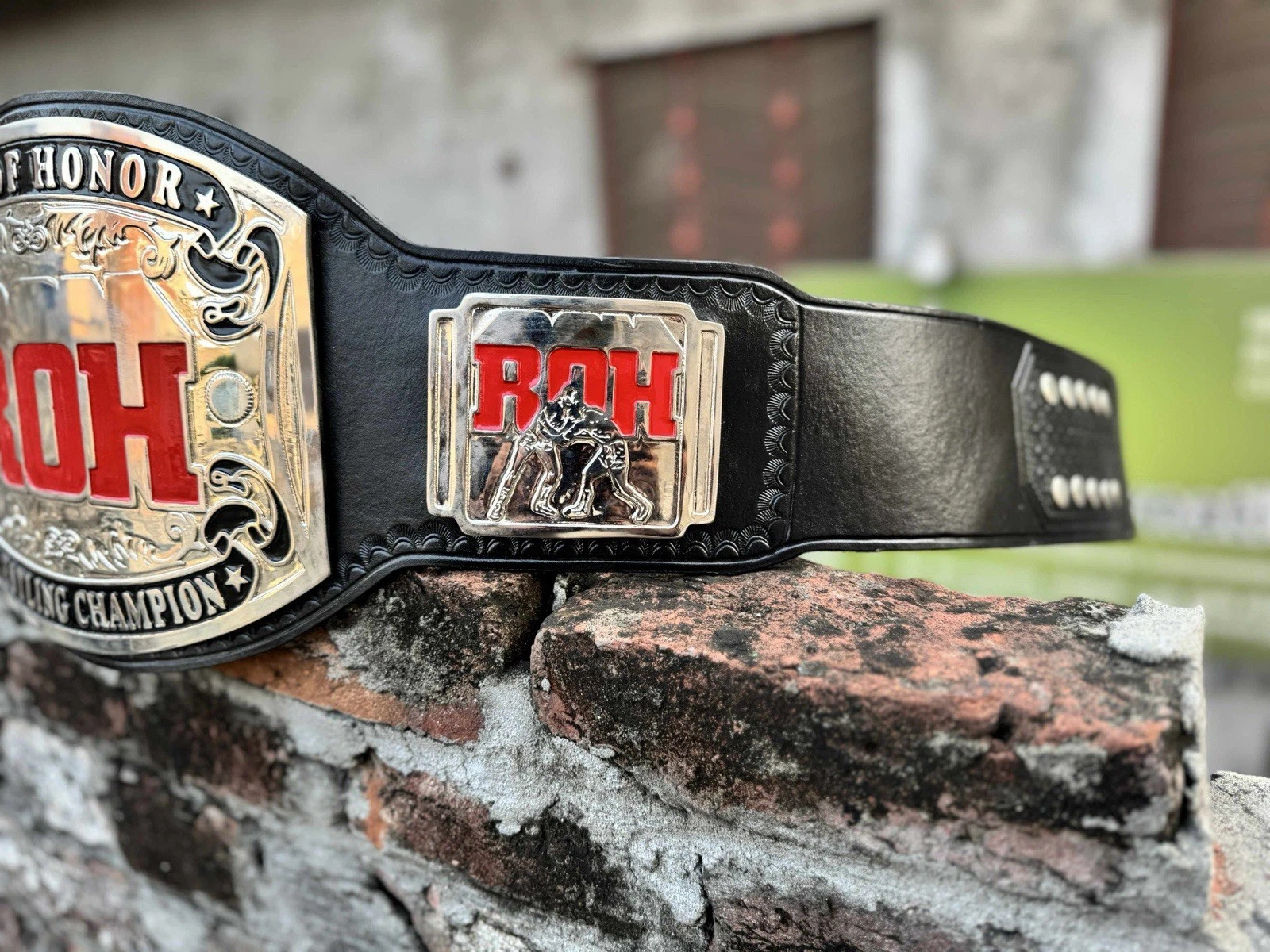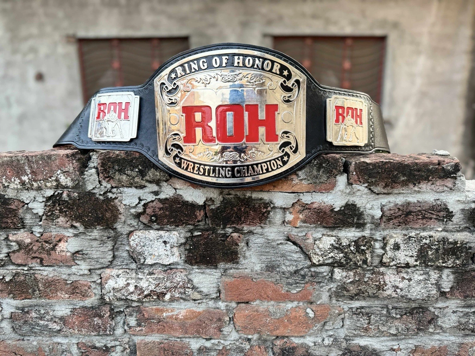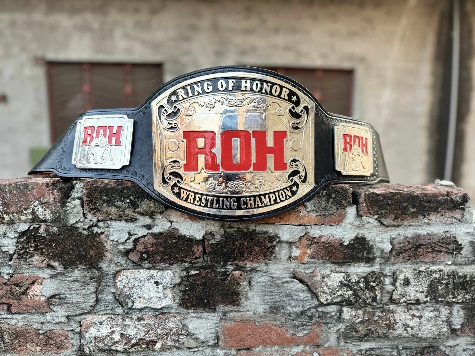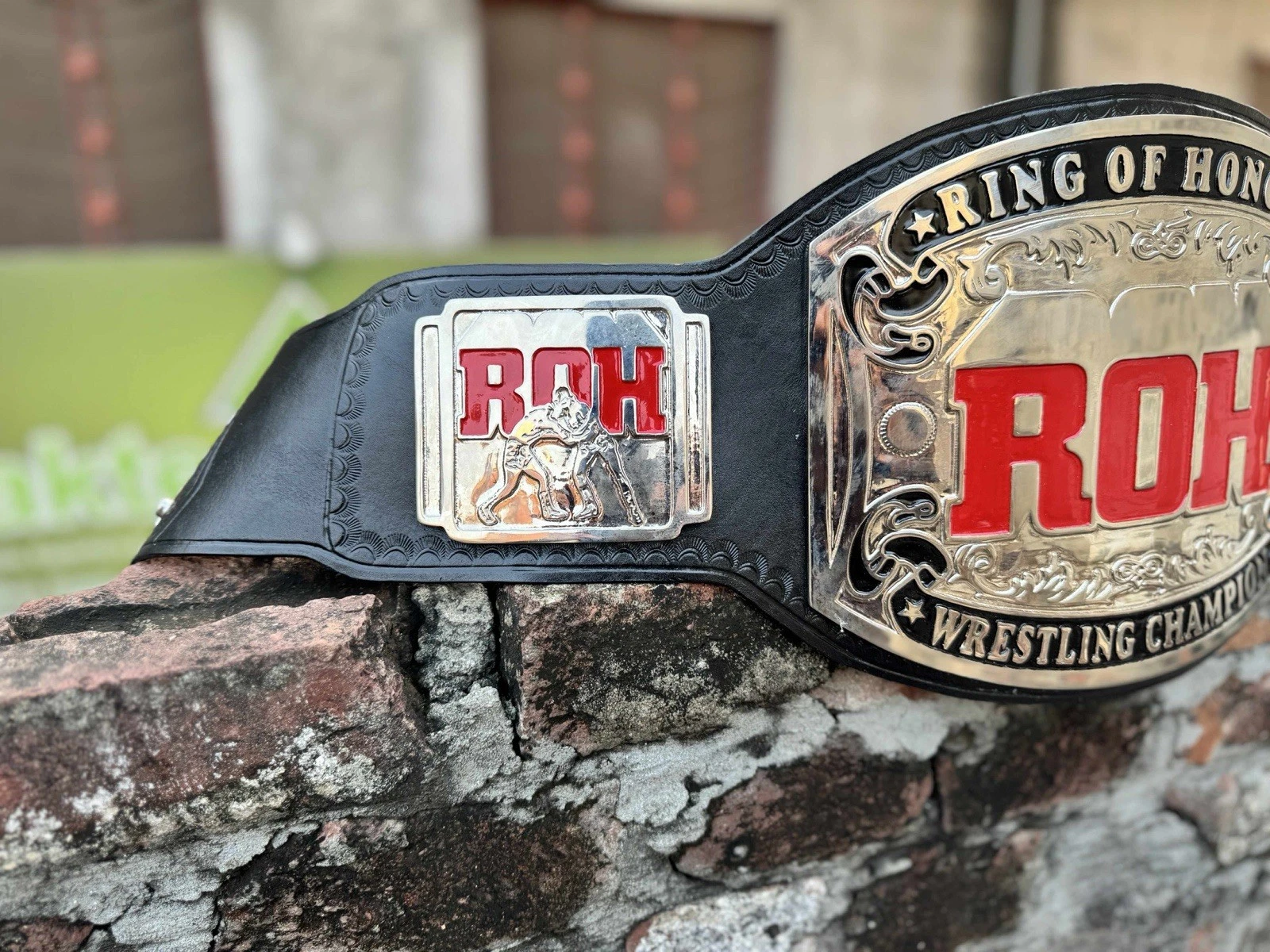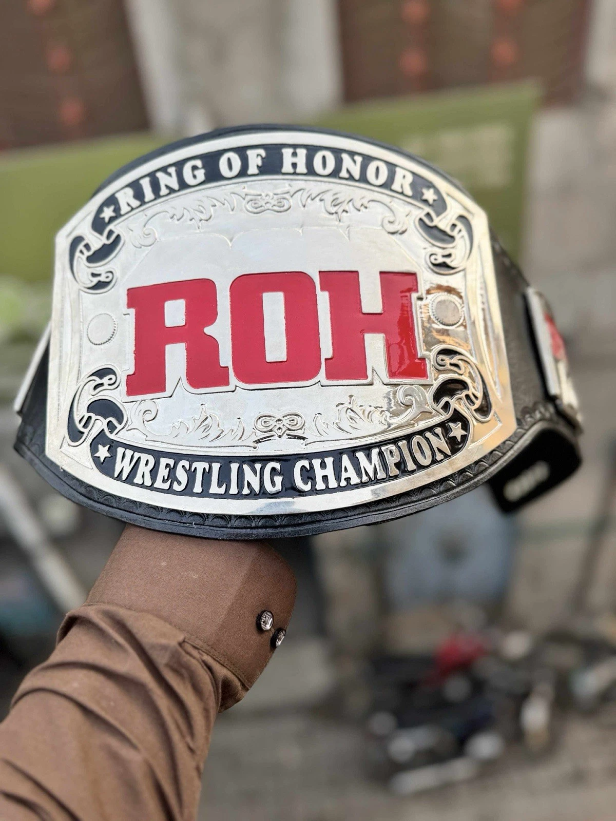 This ROH Ring of Honor Wrestling Championship Belt Replica is a stunning 4mm gold plated accessory perfect for any wrestling fan. The replica belt features the iconic ROH design, making it a must-have for supporters of the league. While it is not officially licensed, the attention to detail and quality craftsmanship make it a prized piece for fans of wrestling and ROH. Perfect for displaying or wearing, this championship belt replica is a great addition to any wrestling memorabilia collection. The belt is made new when ordered, making it a must-have for collectors and enthusiasts looking to show their support for the sport. Made in Pakistan, this belt is made with great craftsmanship and a stylish addition to any wrestling fan’s collection. Please allow 12 days processing and 8-15 days shipping