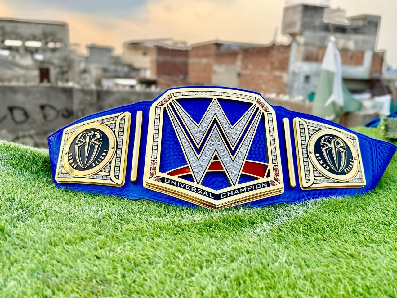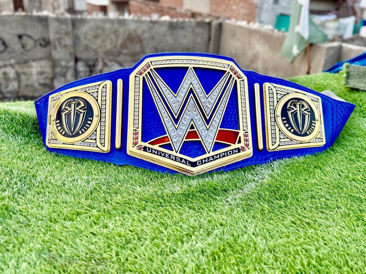 Home/Network Logo/Roman Reigns Blue Universal Championship Belt. Premium 16mm CNC Plates / 24K Gold / Original CZ Stones