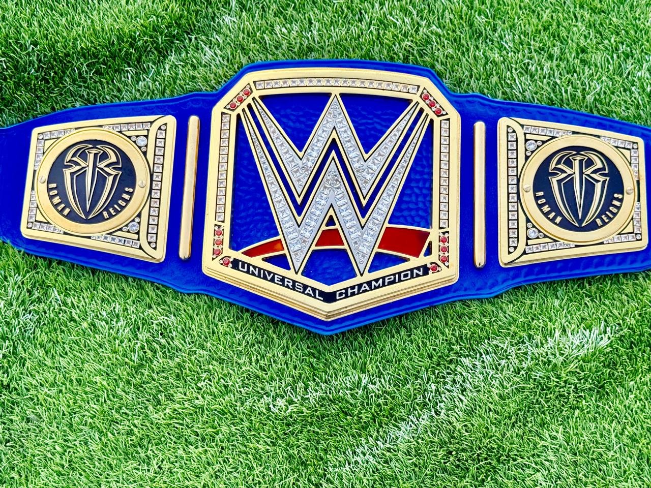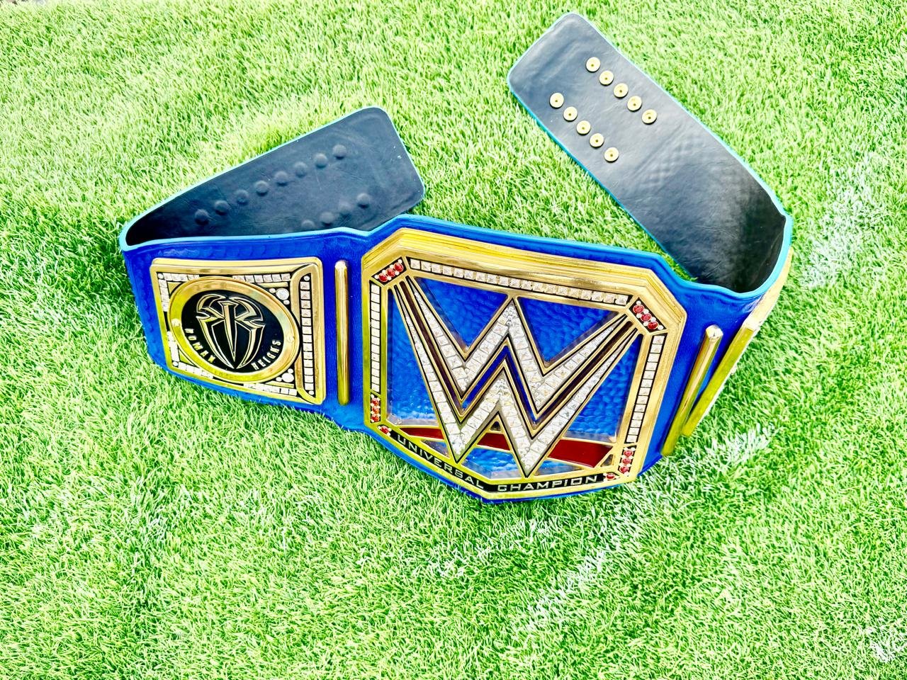 Roman Reigns Blue Universal Championship Belt. Premium 16mm CNC Plates / 24K Gold / Original CZ Stones
