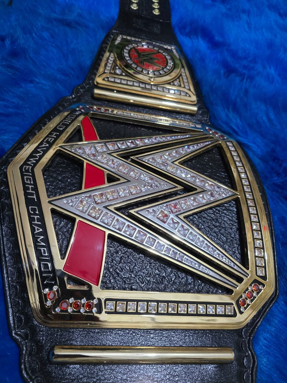Own the glory with this premium WWE World Heavyweight Championship Replica Belt. Designed with high-quality craftsmanship, this belt features detailed 4MM thick zinc alloy plates with a brilliant gold finish and a durable black leather strap.