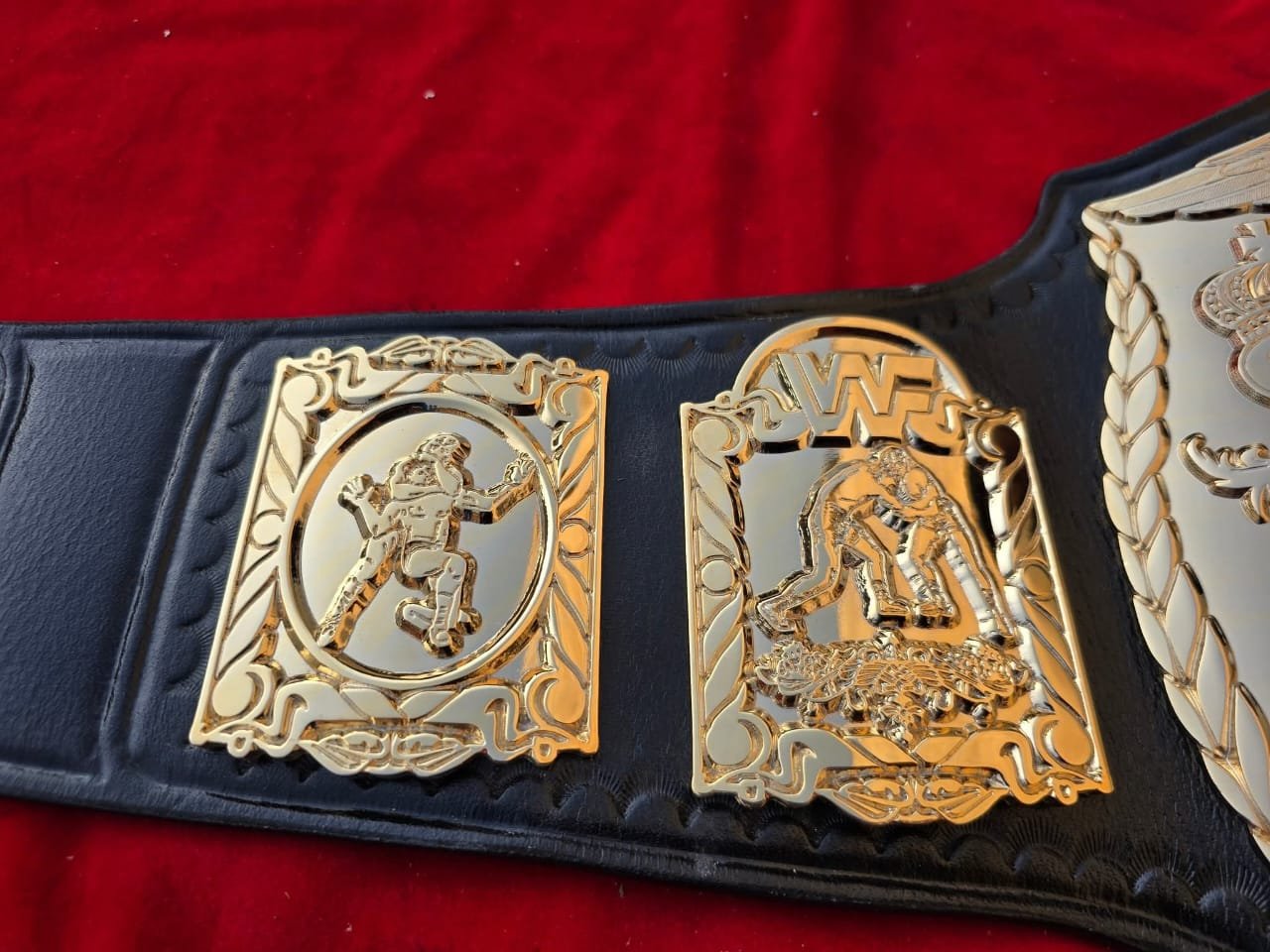 This championship belt represents one of wrestling’s most legendary tag team designs. This WWF tag team championship belt celebrates legendary partnerships and the golden era legacy. Moreover, it honors the incredible weight of tag team championship history that defined WWE. Additionally, this replica captures the essence of championship excellence and wrestling tribute tradition. Furthermore, this championship features 4mm zinc CNC plates with stunning authentic 24K gold details. The signature design honors legendary tag team title reigns and memorable WWE championship moments. Pure genuine hand-tooled leather is used for the strap to ensure authentic quality. This belt deserves quality like this, so buy yours today at the best price. It’s time to celebrate wrestling’s legacy with this iconic WWF World Tag Team title.